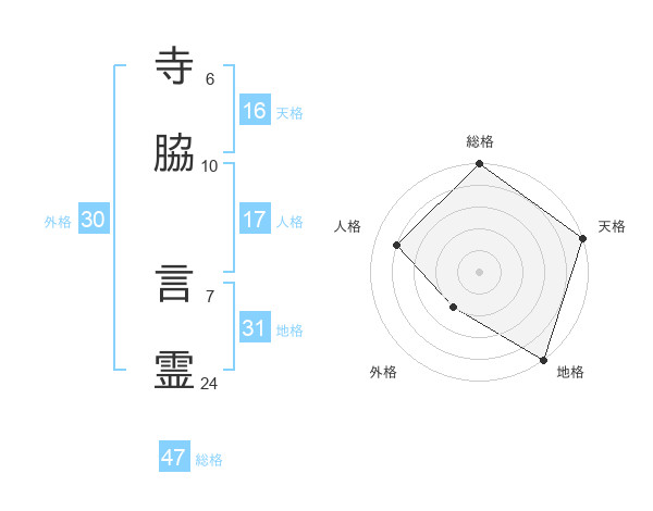 寺脇 言霊さんを姓名の画数から五運を鑑定