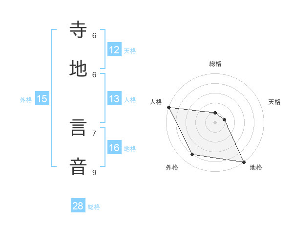 寺地 言音さんの総格は28画の1点!