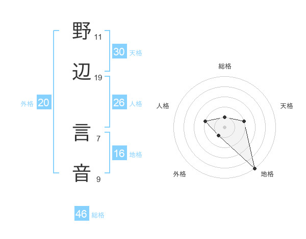 野辺 言音さんの地格は16画の5点!