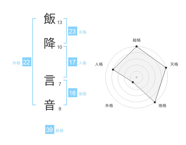 飯降 言音さんの総格は39画の5点!