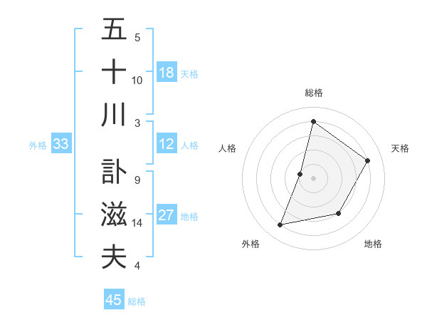五十川 訃滋夫さんを姓名の画数から五運を鑑定