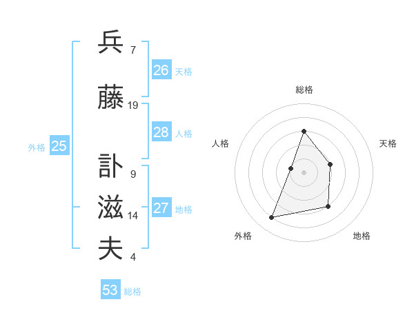 兵藤 訃滋夫さんを姓名の画数から五運を鑑定