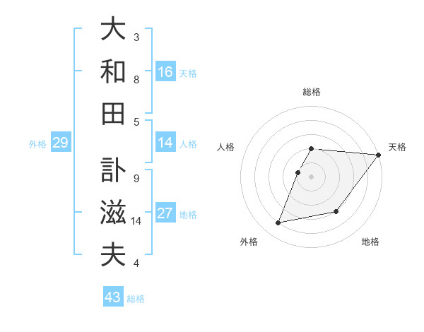 大和田 訃滋夫さんを姓名の画数から五運を鑑定