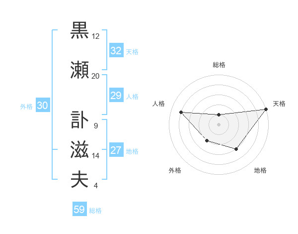 黒瀬 訃滋夫さんの天格は32画の5点!