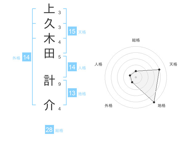 上久木田 計介さんの地格は13画の5点