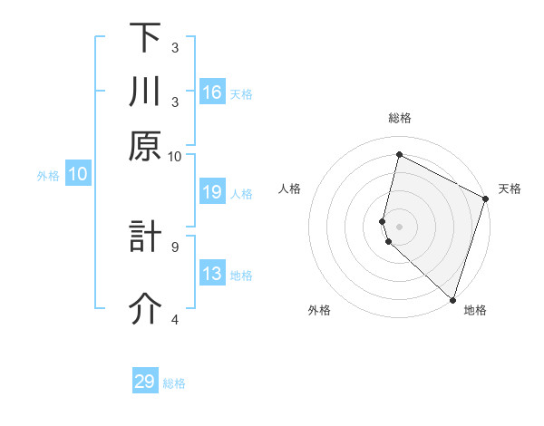 下川原 計介さんの総格は29画の4点!