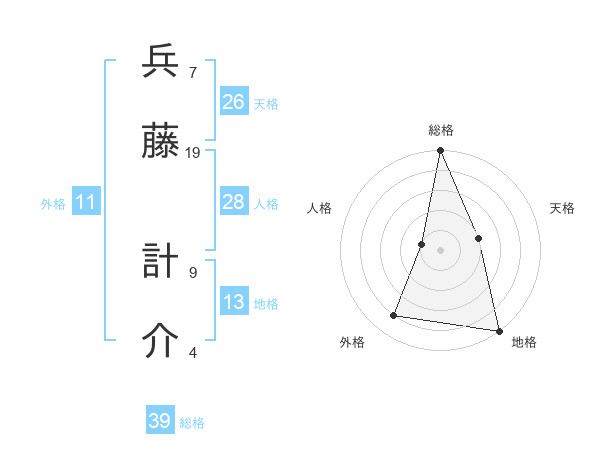 兵藤 計介さんを姓名の画数から五運を鑑定