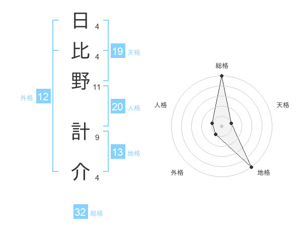 日比野 計介さんの総格は32画の5点!