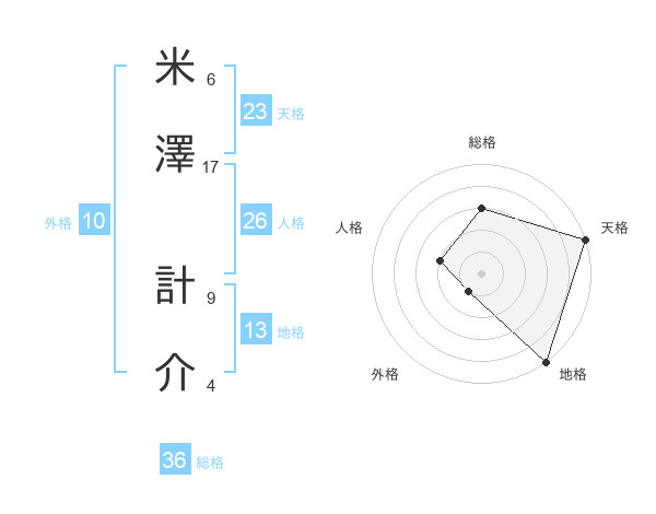 米澤 計介さんの総格は36画の3点!