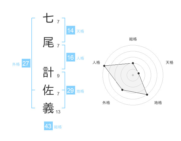 七尾 計佐義さんを姓名の画数から五運を鑑定