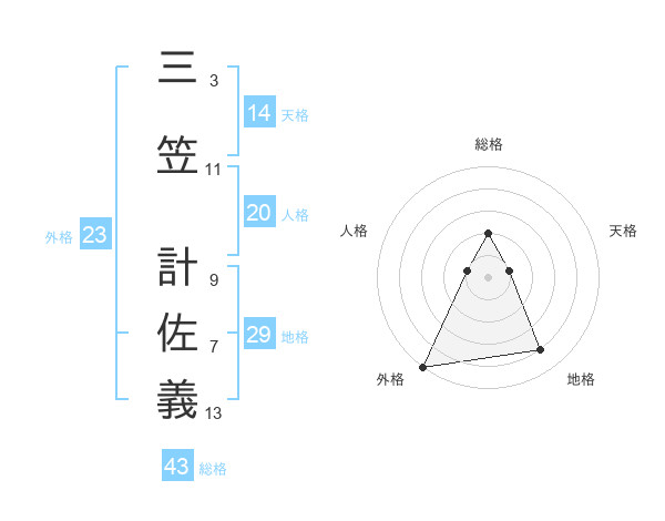三笠 計佐義さんを姓名の画数から五運を鑑定