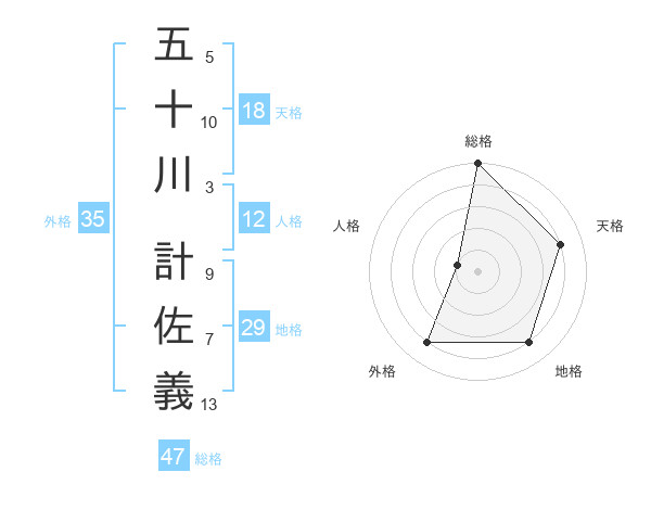 五十川 計佐義さんを姓名の画数から五運を鑑定