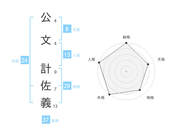 公文 計佐義さんを姓名の画数から五運を鑑定