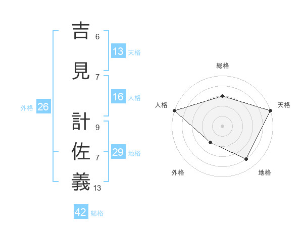 吉見 計佐義さんを姓名の画数から五運を鑑定