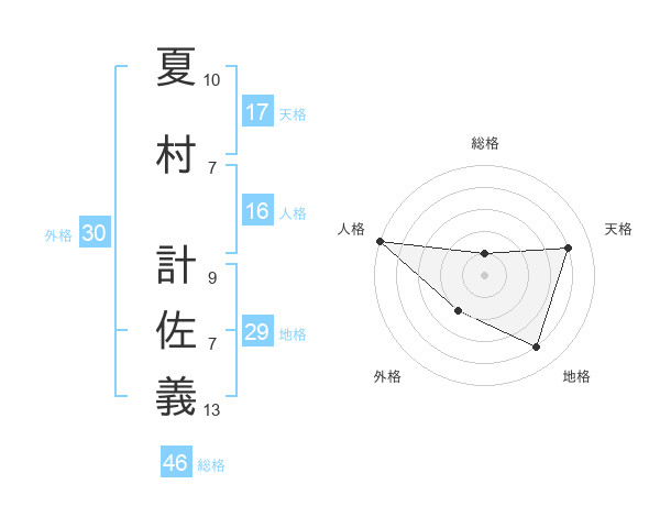 夏村 計佐義さんを姓名の画数から五運を鑑定