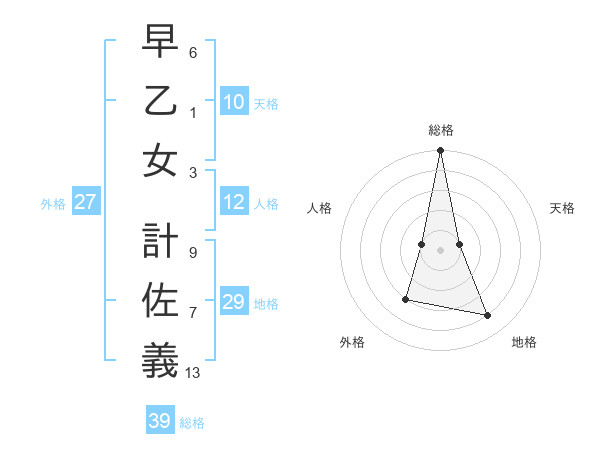 早乙女 計佐義さんを姓名の画数から五運を鑑定