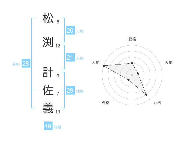 松渕 計佐義さんを姓名の画数から五運を鑑定