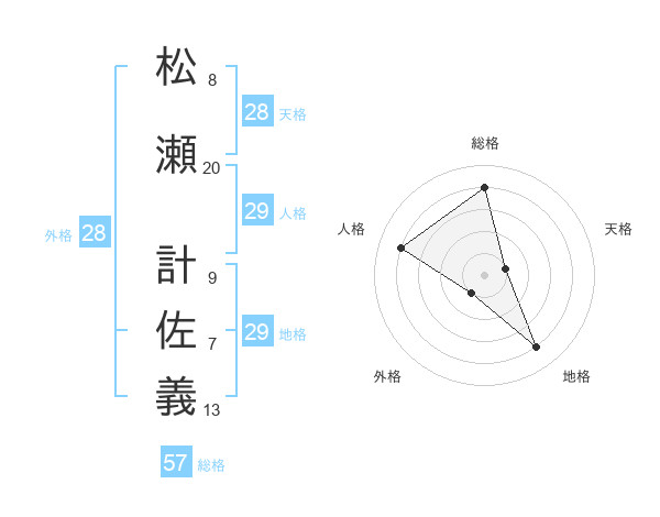 松瀬 計佐義さんを姓名の画数から五運を鑑定