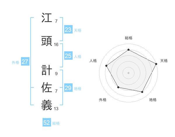 江頭 計佐義さんを姓名の画数から五運を鑑定