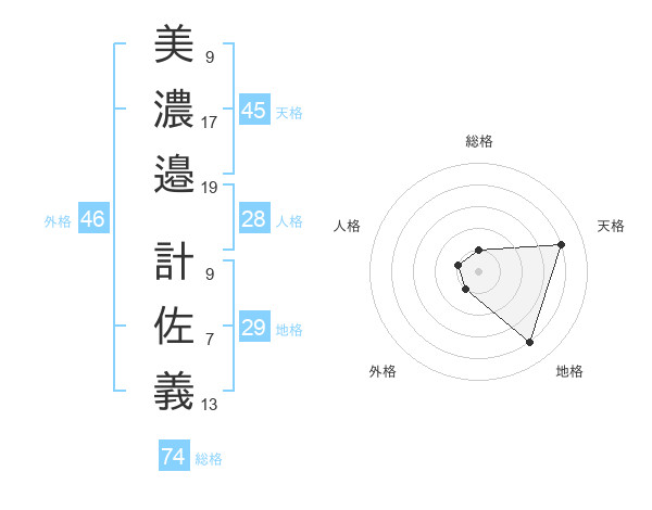 美濃邉 計佐義さんを姓名の画数から五運を鑑定