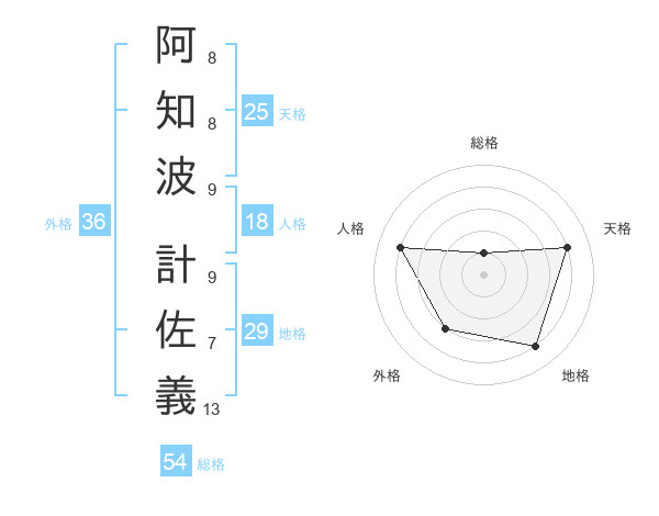 阿知波 計佐義さんの天格は25画の4点!