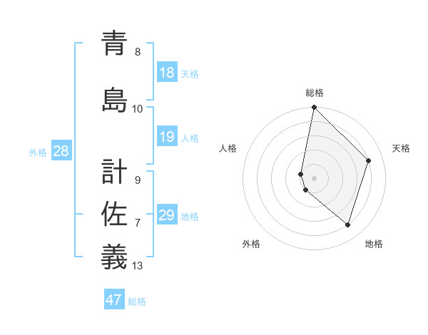 青島 計佐義さんを姓名の画数から五運を鑑定