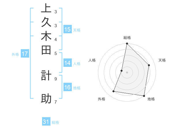上久木田 計助さんを姓名の画数から五運を鑑定