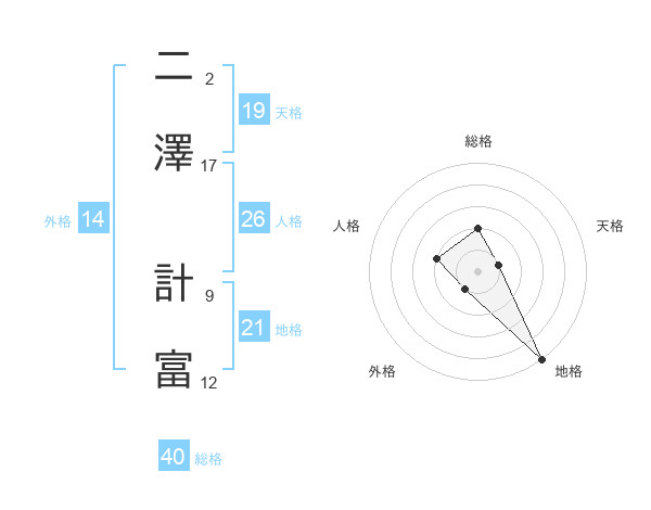 二澤 計富さんの総格は40画の2点!