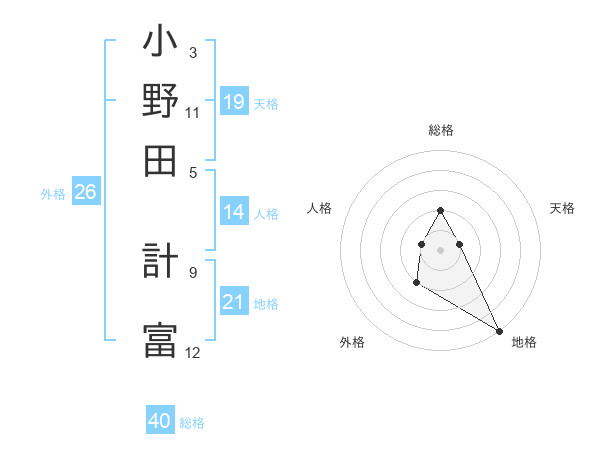 小野田 計富さんの総格は40画の2点!