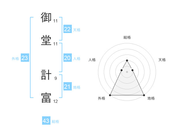 御堂 計富さんの外格は23画の5点!