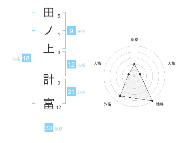 田ノ上 計富さんを姓名の画数から五運を鑑定
