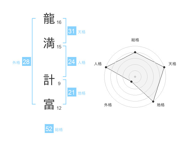 龍満 計富さんの総格は52画の4点!
