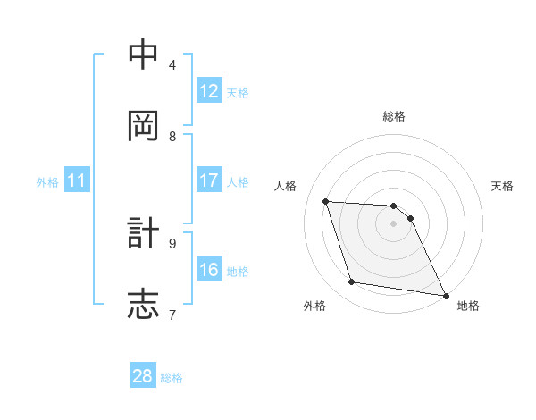 中岡 計志さんの総格は28画の1点!