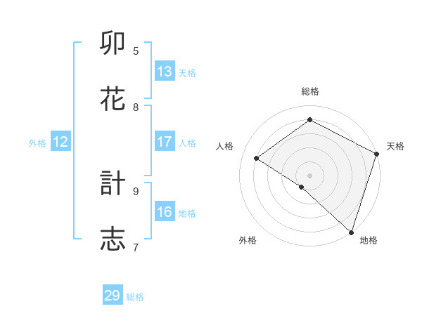 卯花 計志さんの総格は29画の4点!