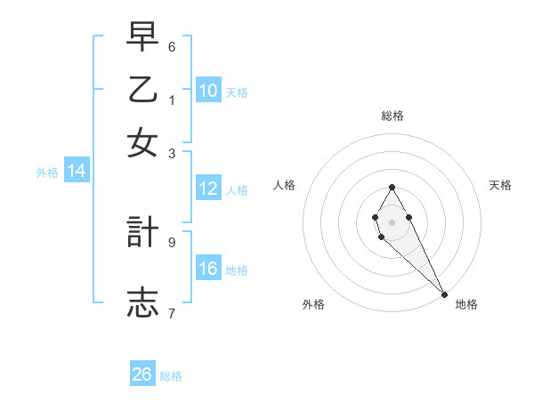 早乙女 計志さんを姓名の画数から五運を鑑定