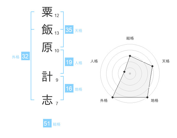粟飯原 計志さんを姓名の画数から五運を鑑定