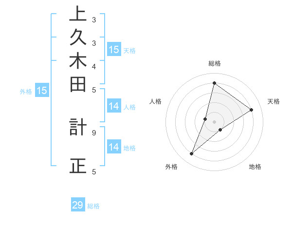 上久木田 計正さんの総格は29画の4点!