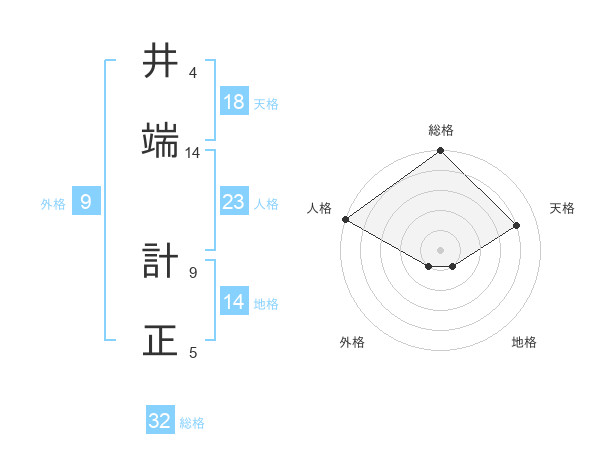 井端 計正さんの総格は32画の5点!