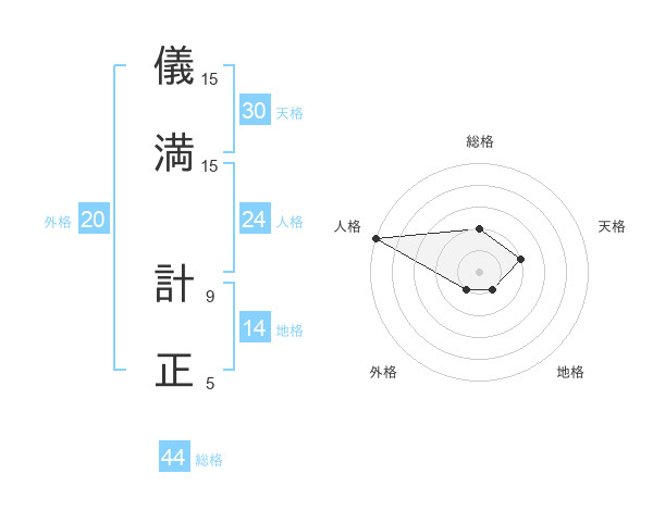儀満 計正さんの総格は44画の2点!