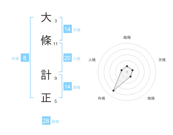 大條 計正さんの総格は28画の1点!