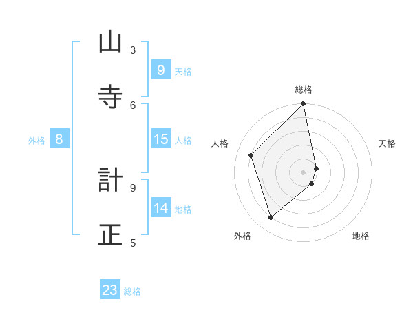 山寺 計正さんの総格は23画の5点!