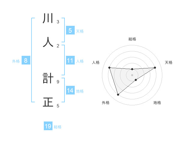 川人 計正さんを姓名の画数から五運を鑑定