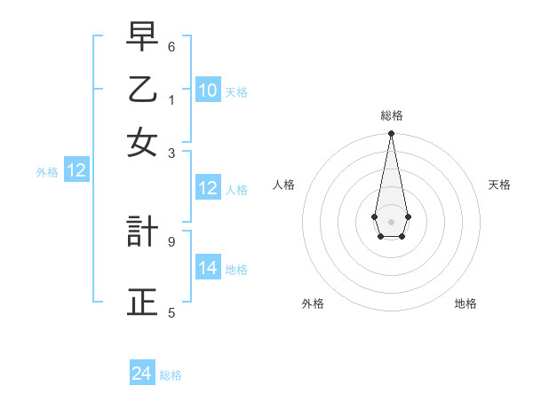 早乙女 計正さんを姓名の画数から五運を鑑定