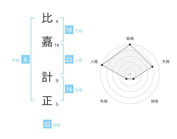 比嘉 計正さんを姓名の画数から五運を鑑定