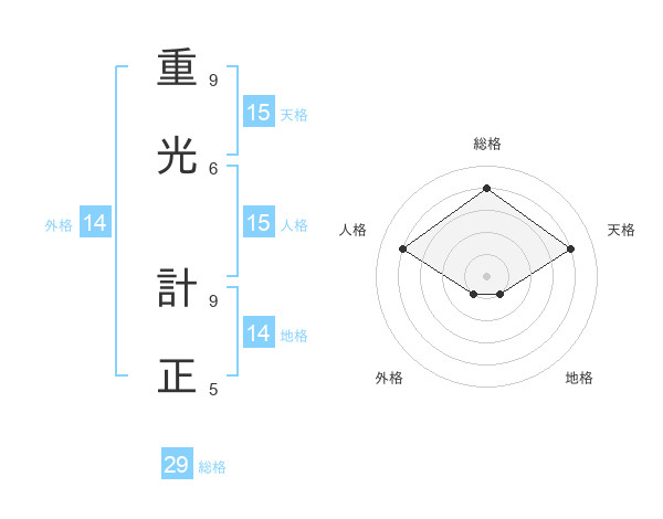 重光 計正さんの総格は29画の4点!