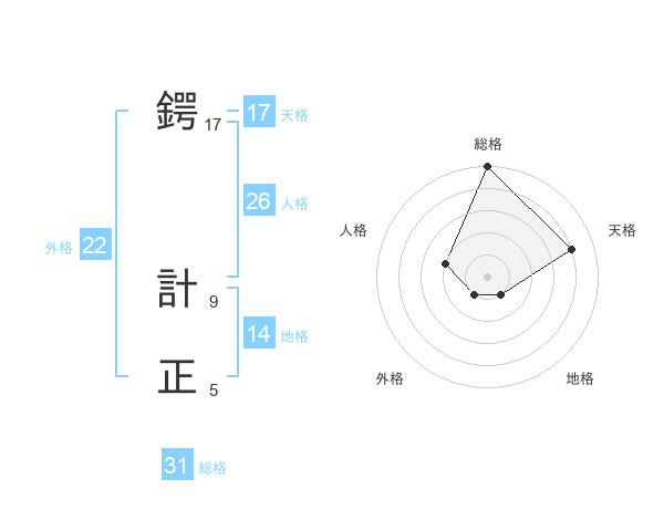 鍔 計正さんの天格は17画の4点!