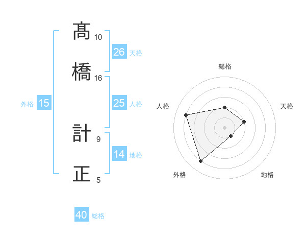 髙橋 計正さんの総格は40画の2点!