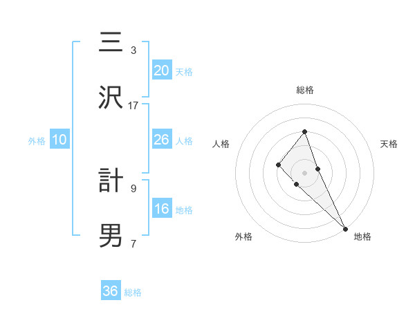 三沢 計男さんの総格は36画の3点!