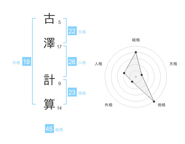 古澤 計算さんの地格は23画の5点!