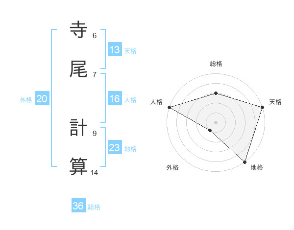 寺尾 計算さんの天格は13画の5点!